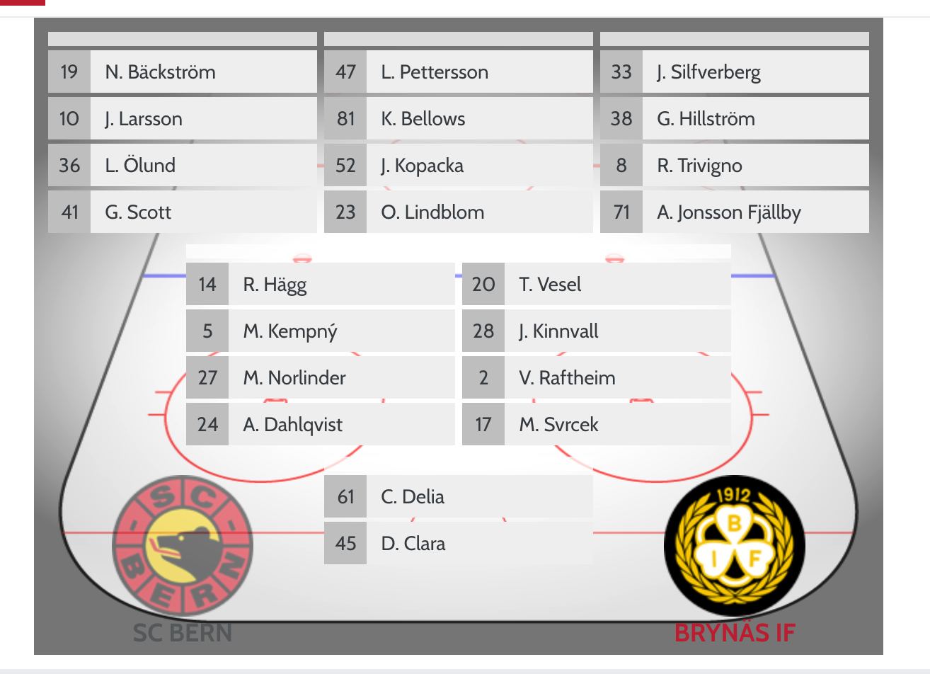Die Schweden können den Schwung vom Ende des letzten Drittels gleich mitnehmen und kommen gleich zum ersten Bully. Die Berner können jedoch Kontern und kommen durch Aktell zu einem Abschluss. Doch dann sind Schweden welche nach einem Berner Puckverlust, kontern können und Larsson welcher mit dem 3:5 die Berner aus der Champions Hockey League schiessen.