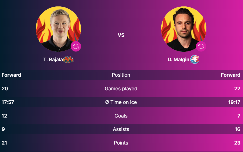 | 9 | ![]() | SCL Tigers | SCL Tigers | 23 | 8 | 1 | 1 | 11 | 0 | 2 | 58:62 | -4 | 30 |