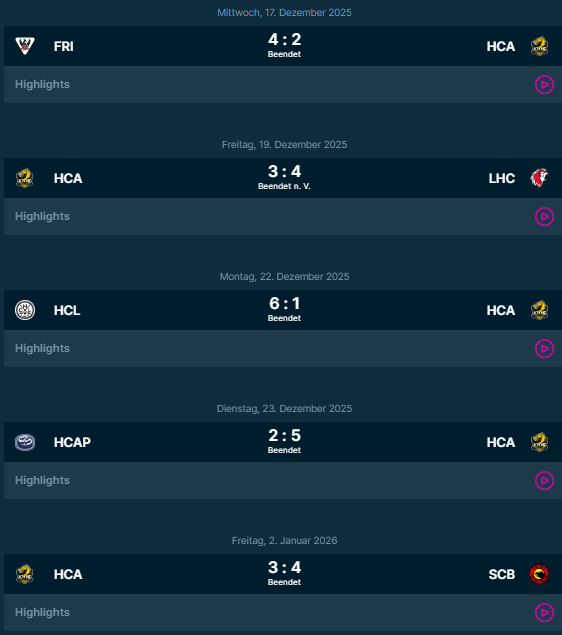 | 13 | ![]() | HC Ambri-Piotta | Ambri-Piotta | 37 | 12 | 0 | 1 | 21 | 2 | 1 | 90:128 | -38 | 41 |