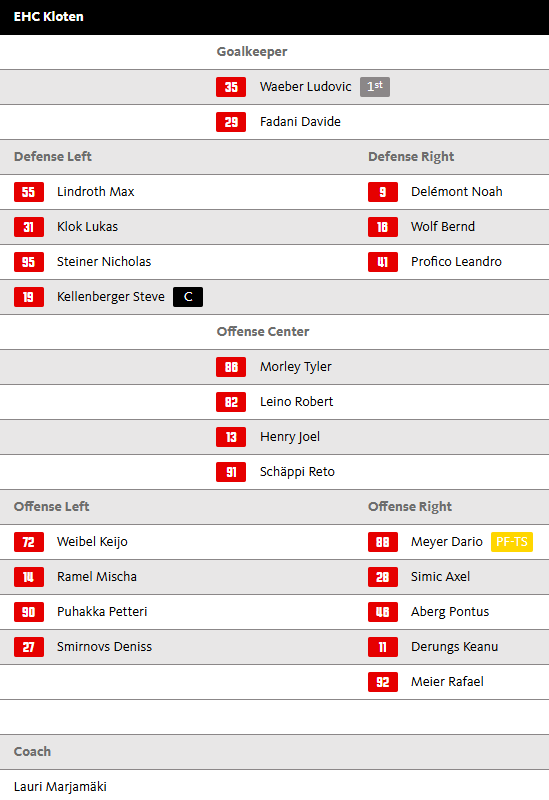 | 12 | ![]() | EHC Kloten | Kloten | 49 | 15 | 4 | 0 | 22 | 4 | 4 | 111:129 | -18 | 61 |