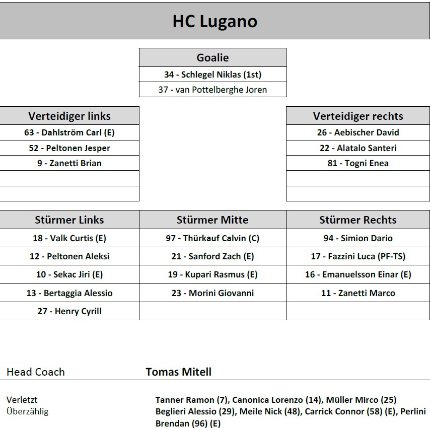 Aufstellung HC Lugano