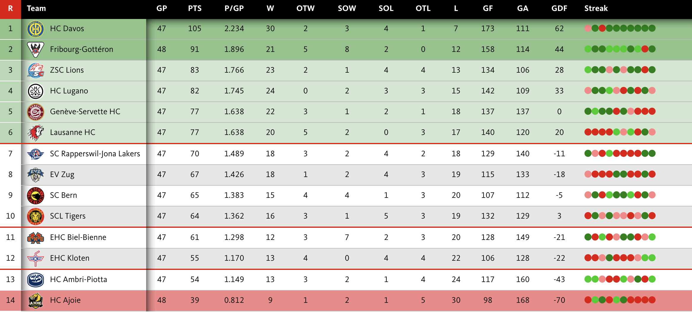 5Genève-Servette HCGenève-Servette HCGenève4923411812144:142282