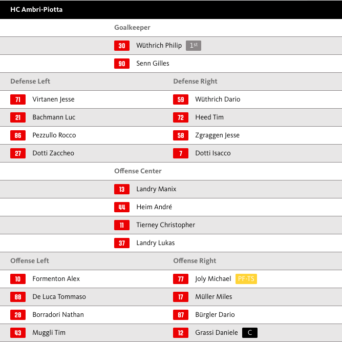 Aufstellung HC Ambri-Piotta