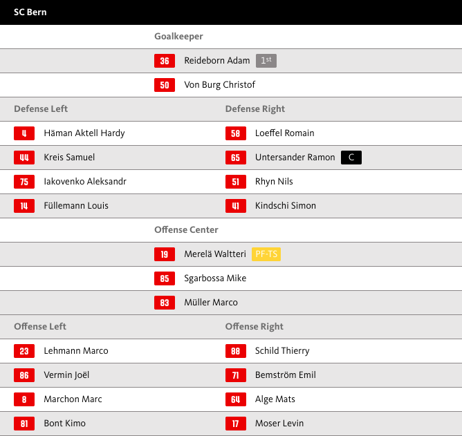 Aufstellung SC Bern