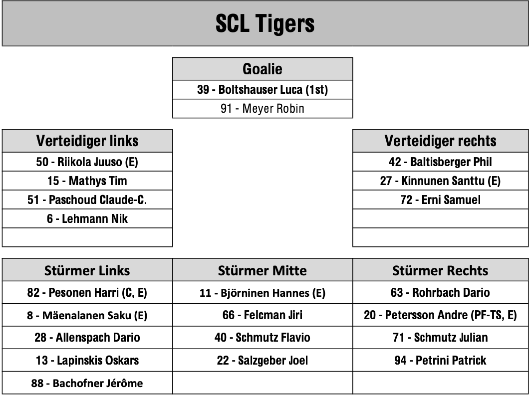 | 11 | ![]() | SCL Tigers | SCL Tigers | 52 | 16 | 3 | 1 | 24 | 4 | 4 | 140:147 | -7 | 64 |