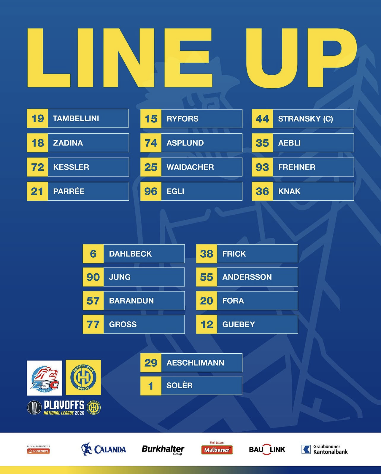 Herzlich willkommen, liebe Eishockeyfans, zum zweiten Halbfinaltag! Heute treffen die ZSC Lions und der HC Davos aufeinander. Einwurf der Scheibe ist um 20 Uhr in der Swisslife Arena. Vorab erfahrt ihr Wissenswertes über beide Mannschaften und seid ab Spielbeginn live dabei. Viel Spass und gutes Mitfiebern!