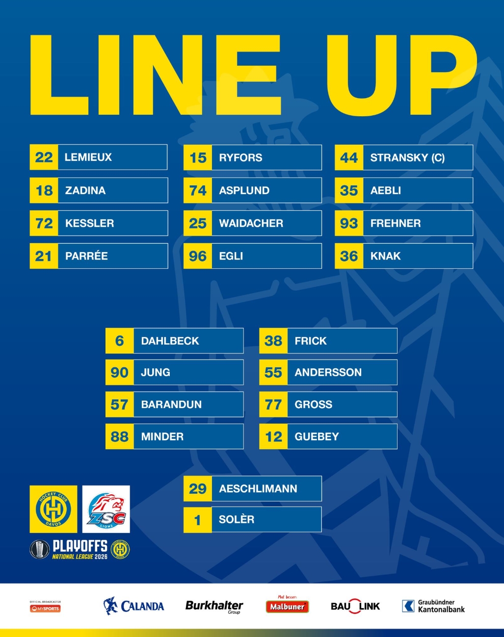 Stürmer Matej Stransky führt das Heimteam als „Flammenhelm“-Träger auf`s Eis. Mit 59 Punkten (33 Tore, 26 Assists, davon 5 Tore und 1 Assist in den Play-Offs) ist er der punktbeste Spieler der Bündner. Für die Gäste aus der Limmatstadt schlüpft Denis Malgin, in Vertretung von Sven Andrighetto, in die Rolle des Topscorers - er sammelte bisher 50 Punkte (17 Tore, 33 Assists, davon 3 Tore und 6 Assists in den Play-Offs).