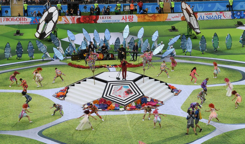 Die Eröffnungsfeier läuft. Robbie Williams heizt den Zuschauern zusammen mit der Opernsängerin Aida Garifullina ein.